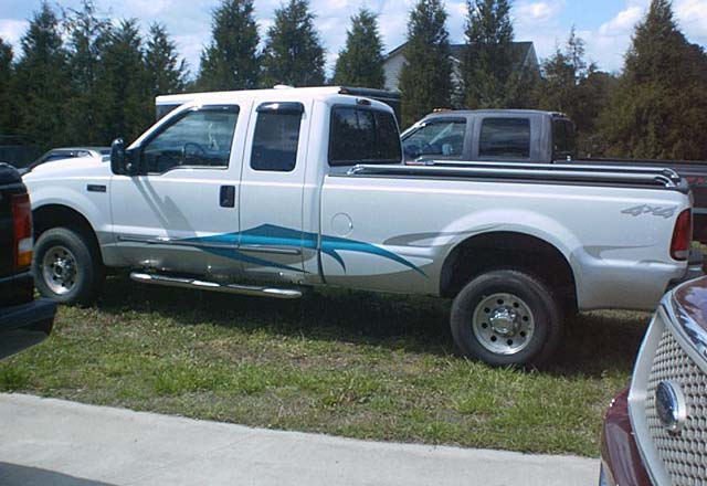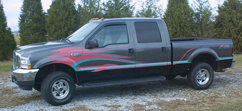 stripe design on both sides and large Ford emblem covering the tailgate.