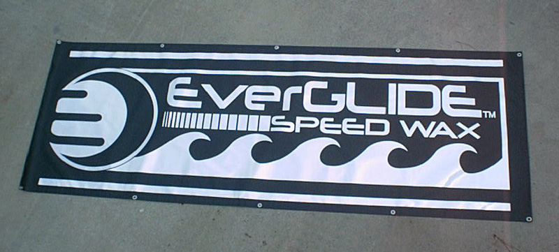 Two different designs for a company that makes surf board and skim board wax. These were done in chrome on black banner stock.