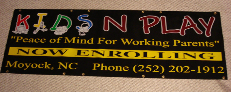 Another black banner for a child care business.